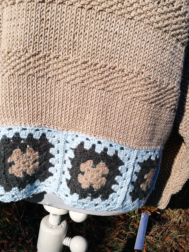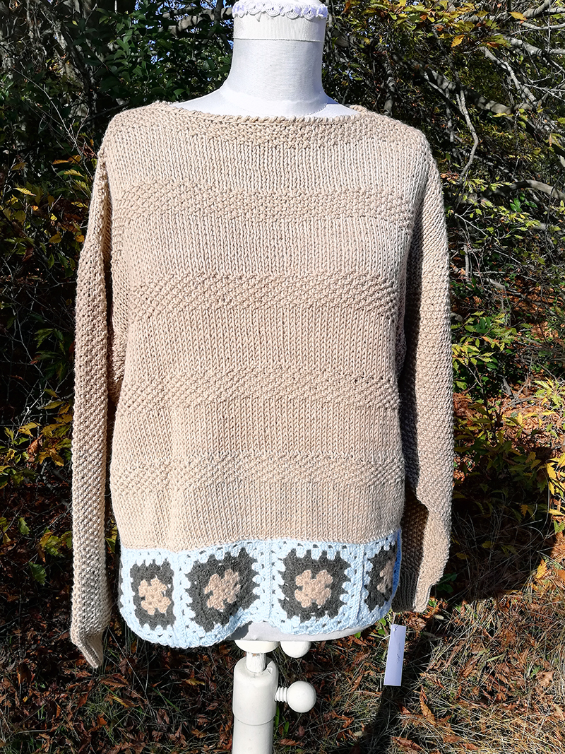 Maglia in filato di pura lana e cachemire, con lavorazione a tricot e crochet, taglia M, fatto a mano e pezzo unico. Spedizione gratuita.