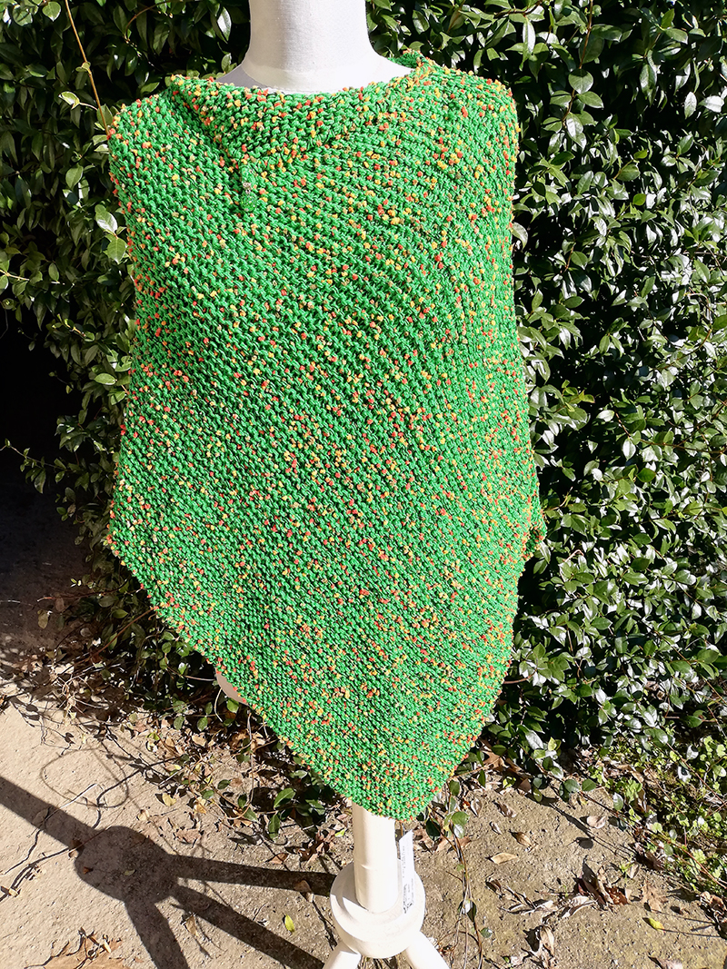 Poncho in filato di pura lana e seta, lavorazione a tricot, taglia M, fatto a mano e pezzo unico. Spedizione gratuita.