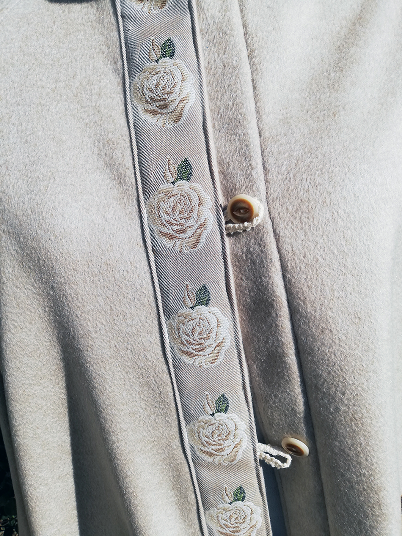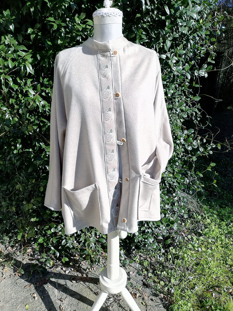 Elegante giacca in puro cachemire, con decoro in pura lana e alamari in filato di seta, taglia M, fatto a mano e pezzo unico. Spedizione gratuita.